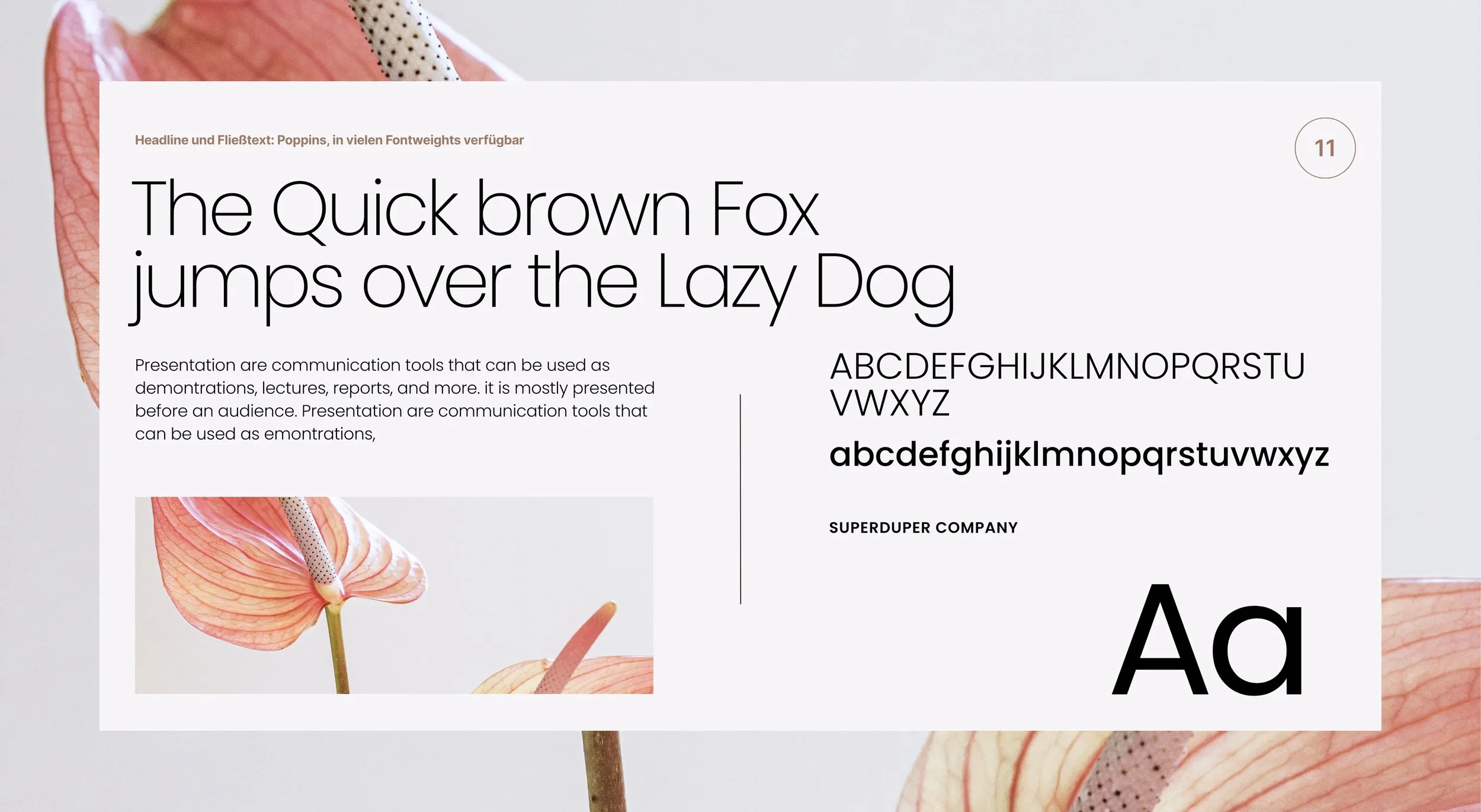 > Maximal 2-3 Schriften verwenden (eine für Überschriften, eine für Fließtext).